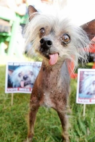 这只名为艾莉的小母狗是一只来自美国田纳西州的无毛犬,一双眼睛向外突出,身上满是小疙瘩,总是懒洋洋的吐着舌头,样子极其丑陋。在2009年的一项比赛中,它赢得了“世界上最丑的狗”称号。