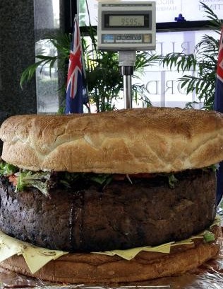 中新网6月8日电 据英国媒体报道,7日,澳大利亚一家咖啡厅打破了一项世界纪录——他们用81公斤的肉饼制作了一个汉堡包,这个汉堡包的烹制时间长达24个小时,得用四名男子才能搬动。