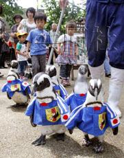 中新网6月11日电 据日本共同社网站报道,11日,身穿南非世界杯日本队服的企鹅们出现在日本岛根县松江市的“松江 Vogel Park”公园,为出征世界杯的日本选手“呐喊助威”。
