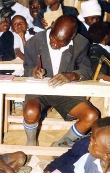 在肯尼亚政府决定小学学费全免后,时年84岁的马鲁格于2004年1月进入小学学习。他与其他小学男生一样,穿着统一的校服——短裤、背心、长袜,背着书包上学堂。唯一不同的是,马鲁格路上要柱着拐杖。