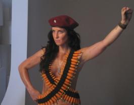 日前,她在纽约替善待动物组织一项名叫“素食革命”活动计划,拍摄宣传照片,照片中她近乎全裸,身上披挂着用胡萝卜取代子弹的弹匣,宣导素食运动。