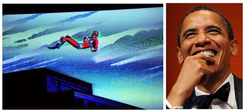 中新网6月21日电 一段把美国总统奥巴马描绘成排除万难的超级英雄大加讽刺的音乐录像,19日在美国的电台及电视台派员协会周年晚宴上播放。有份列席的奥巴马观赏这段录像时笑得合不拢嘴。