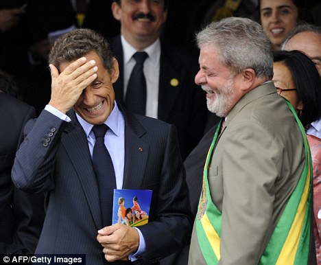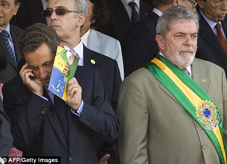 在打电话时,萨科齐试图用一张薄薄的宣传单挡住大家的视线。不过,此举并未能逃过巴西利亚数千名观看者的眼睛。有舆论指出,萨科齐不分场合接电话的举动,不可能为他赢得更多的粉丝而会招来越来越多的反对者。