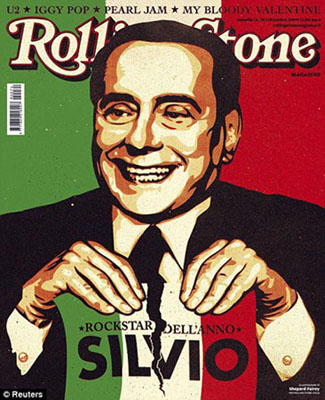 因生活方式及作风极像一名摇滚巨星,意大利总理贝卢斯科尼日前被世界知名摇滚乐杂志《滚石》评为2009“年度摇滚明星”,并且成为该杂志的封面人物。