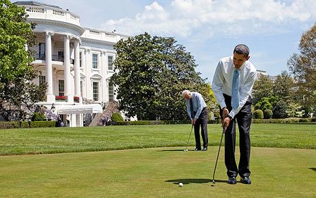 有媒体称,在入主白宫以来,奥巴马共打了32次高尔夫球,而这一数字竟然是前任乔治•布什的8倍。