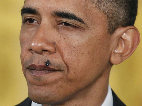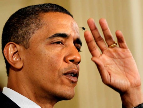 报道称,22日,奥巴马在白宫东厅就医改问题发表演讲。演讲中,一只恼人的苍蝇不停的在奥巴马脸旁徘徊,它甚至一度还停在总统的上嘴唇“歇脚”。平日里指点江山的总统面对这一状况也顾不上保持形象,数度中断演讲用手驱赶萦绕耳边的苍蝇。