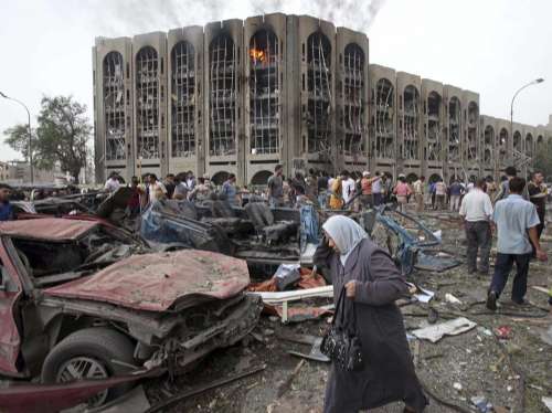 爆炸针对巴格达省政府大楼和伊司法部大楼,现场距离设于曼苏尔酒店内的中国驻伊大使馆及新华社仅50米,由于爆炸威力强大,使馆门窗几乎全部被毁,天花板脱落,两名酒店中国厨师受伤,使馆和新华社无人伤亡。