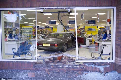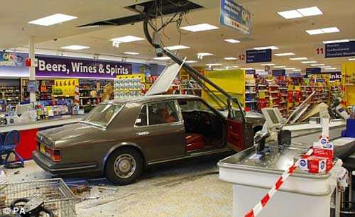 但没想到这名醉汉竟返回停车场,发动他的劳斯莱斯豪华轿车径直向超市冲去。