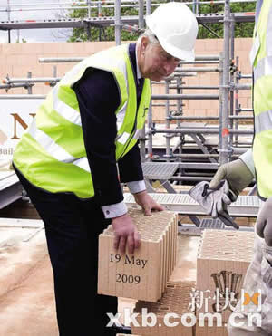 开始的时候,王储兴致勃勃,他拒绝了现场施工经理提供的防护手套。戴上安全帽、穿好防护马甲后,查尔斯开始搬运蜂窝状砖块,修建围墙。