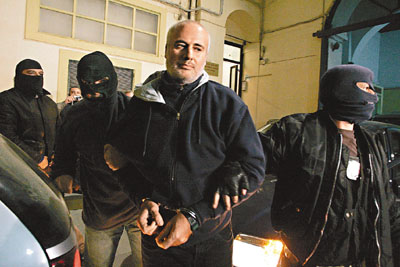 中新网11月17日电 意大利警方15日在南部西西里岛小城特拉帕尼郊外,逮捕被通缉15年的黑手党头目拉库利亚。绰号“兽医”的拉库利亚为意大利10大通缉犯之一,涉及多宗谋杀案。当中最耸人听闻的,是绑架并杀害一名11岁儿童,再用酸液毁尸灭迹。