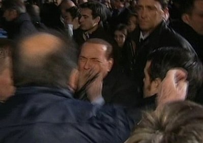 73岁的贝卢斯科尼13日晚间受邀在米兰参加一个集会时遭一名男子殴打,该男子手持一个米兰大教堂的模型打在贝卢斯科尼的脸上,致其面部出血,之后被迅速送往医院。医生称其没有生命危险,只是鼻骨骨折,两颗牙齿松动,嘴唇大量出血需要缝针。