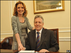 罗宾逊的妻子为自己情夫作生意而从两个地产商那里获得五万英镑的资助。罗宾逊被指控故意隐瞒这件事。北爱地方自治议会将对罗宾逊夫妇的行为分别做出调查。