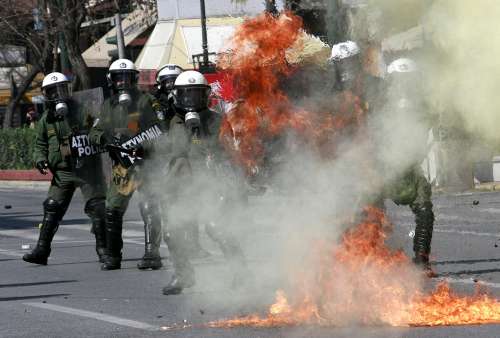 其中在雅典中部有三万多人示威,于国会大楼外等多处地方,示威者向防暴警察投掷石块和汽油弹,放火烧车和垃圾桶,又破坏银行、珠宝店、戏院等10多间商店,警方发射催泪弹和手榴弹驱散人群。