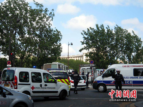 中新社巴黎5月4日电 (卫中 红霞)为应对恐怖袭击威胁,法国警方4日在巴黎埃菲尔铁塔下及北郊法兰西体育场等地同时进行反恐怖连环爆炸模拟演习。