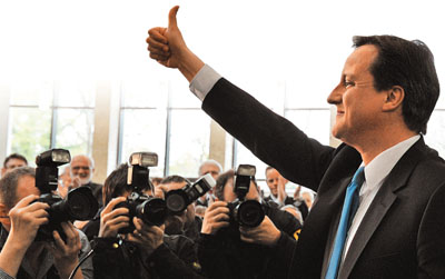 保守党党魁卡梅伦前天展开24小时拉票,北爱尔兰民主统一党(DUP)表示愿意结盟,卡梅伦即使无法在大选中直接取得国会多数议席,仍可以组建联合政府,有望入主唐宁街。为阻止保守党重掌政权,部分工党议员呼吁部分选区的支持者转投自民党。