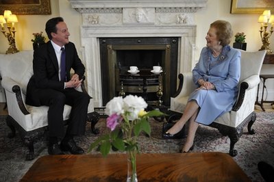 中新网6月9日电 据外电报道,在离开唐宁街10号约20年后,英国前首相撒切尔夫人重回故地,探访她的晚辈、保守党新任首相卡梅伦。