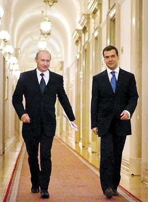 普京在自己的第二任总统任期结束时钦点梅德韦杰夫作接班人。作为俄罗斯最受欢迎的政治家,普京可望在2012年再度竞选总统,且如果成功,他可以一直执政至2024年。