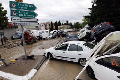据悉,这是法国自1827年以来降下的最猛烈暴雨,洪水吞没了瓦尔地区的街道,迫使当地居民纷纷爬上屋顶避难。救援人员正积极挖掘被泥浆埋没的车子和残骸,以便寻找失踪者。