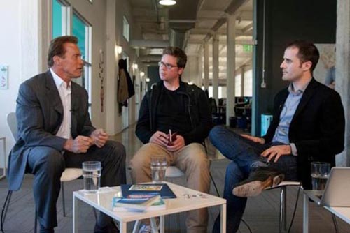 在与Twitter创始人埃文·威廉姆斯和比兹·斯通聊天时,施瓦辛格说:“作为社交网站,Twitter涵盖了很多领域,从健身美体到国家财政预算,什么都有。访问这个网站的人水平不一,但是都能得到自己想要的东西。你们将社会网络的作用发挥到了极致,你们的构想非常杰出,令人称奇。”
