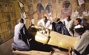 考古人员1922年在埃及南部金斯河谷墓穴发现图坦卡蒙法老木乃伊。当时木乃伊身上遍铺珠宝饰物,还有一张做工精美的金面具。研究人员对图坦卡蒙法老和其他数具木乃伊实施DNA检测和电脑断层扫描后认定,图坦卡蒙的祖父是阿蒙霍特普法老三世,父亲是埃赫那顿法老,后者因改革古埃及众神崇拜传统、强制推行太阳神“一神独尊”而著名。