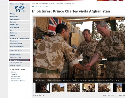 据报道,查尔斯25日直入塔利班活动较为频繁的阿富汗南部赫尔曼德省,慰问驻扎在当地的英军士兵。这是阿富汗战争以来查尔斯首次慰问驻阿前线官兵。