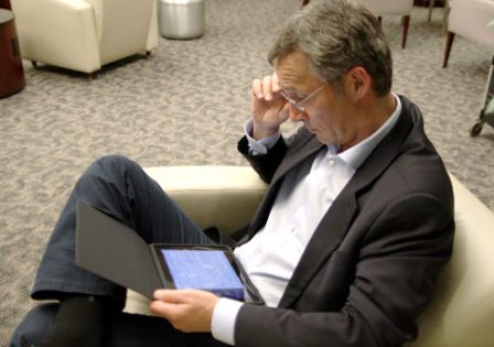 中新网4月17日电 据台湾“中广新闻网”17日报道,由于冰岛火山灰影响欧洲航空运输,挪威总理斯托尔滕贝格也和其它乘客一样,滞留在美国纽约机场。但他在机场使用苹果平板电脑(iPad)的照片被拍了下来,称他在用电脑“遥控”治国。