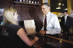 当天,奥巴马原定在水牛城发表一份有关国内经济形势的演讲。午饭时间,总统车队临时停在一家小吃店。