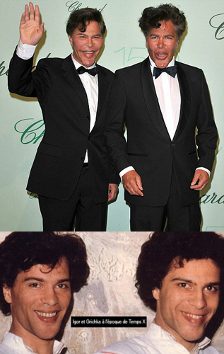 这对孪生兄弟名为伊果尔•伯达诺夫(Igor Bogdanoff)与戈里科卡•伯达诺夫(Grichka Bogdanoff)。他们在下巴与脸颊上植入了大量移植物,包括可消除皱纹的肉毒杆菌素等填充物。