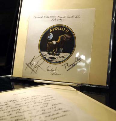 另一个惊喜是,一枚原来估价最高达三万五千美元的“阿波罗十一号”徽章,竟以六万一千美元售出。这枚徽章直径长八点九厘米,上面印有一只在月球表面上空飞行的鹰。