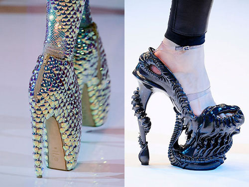 中新网12月29日电 据台湾“今日新闻”29日援引外电报道,今年巴黎时尚周,有英伦时尚界“坏男孩”之称的设计师亚历山大-麦昆(Alexander McQueen)推出外型前卫的高跟鞋armadillo(犰狳);不过,该鞋的鞋跟高达25公分半,让3名国际顶尖名模罢工抵制,呼吁时尚界重视模特儿的健康安全。