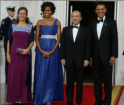 在宴会上,奥巴马与卡尔德龙为两国友谊互相祝酒。此次国宴,奥巴马夫妇再次邀请了他们喜欢的高级厨师里克•贝雷斯准备菜肴。