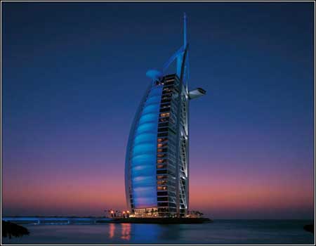 据台湾“中广新闻网”10日报道,帆船饭店正式名称是“阿拉伯之塔”,由于外型像树立起来的帆船,因此被人称为帆船饭店,也有人说它是七星饭店。它的特殊造型,使它成为迪拜地标。