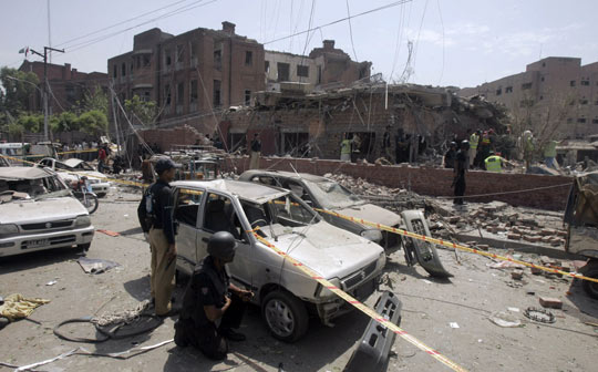 爆炸发生地是拉合尔的商业区,一些邻近建筑也受到爆炸影响。一座加油站顶棚坍塌,一家医院屋顶坍塌导致20人受伤,情报署的办公楼也受到严重损坏——目前,一些军人进入其中监督搜救工作。