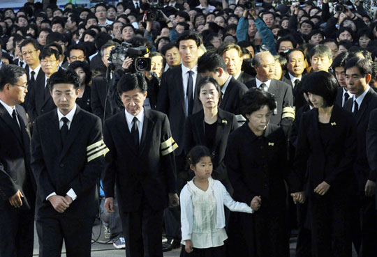 当时,卢武铉的孙女卢绪恩(音)似乎并不知道爷爷去世,显得天真无暇,这更使旁边人悲痛万分。发丧时,天真的小绪恩坐在权良淑女士旁边向遗像做出“V”型手势。