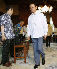 中新网6月2日电 为推动本月起开始的夏季“清凉商务”活动,日本首相麻生太郎和全体内阁成员2日上午穿上沖绳传统清凉夏装出席了内阁会议。