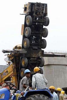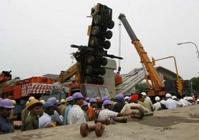 此前一天,该处地铁施工工地发生高架桥坍塌事故,造成6人死亡、15人受伤。一天后,在该事故清理现场又发生了起重机倒塌事故,造成4人受伤。
