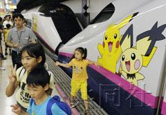 中新网7月18日电 据共同社报道称,为迎接学生暑假,日本JR东日本铁道公司18日推出了车身印有著名动画片《宠物小精灵》角色形象的专题新干线列车。即日起至9月23日期间,共计13趟的该专题列车将在东北、上越、秋田、山形和长野等五条线上行驶。