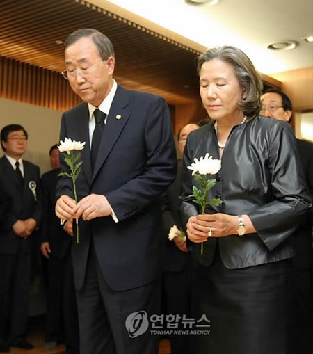在金大中生前接受治疗的医院临时设立的灵堂中,潘基文表达了对金大中逝世的难过之情和失落感。他向金大中的遗孀、家人及韩国人民和政府表示深切慰问。
