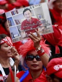 中新网10月18日电 泰国万名红衫军17日下午在首都曼谷举行集会,要求政府公布就8月17日递交的赦免前总理他信请愿书审查工作的进展。他信通过电话向支持者发表10分钟讲话,表示“泰国政府害怕他回国”,将继续和平斗争。