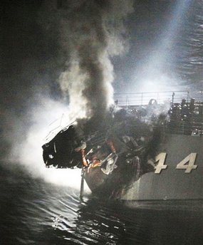 日本防卫相北泽俊美在当天上午的记者会上表示,护卫舰在相撞前曾采取过倒车等回避措施,但未能避免事故。日本运输安全委员会也已开始调查事故原因。