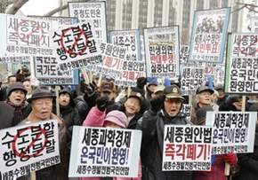 韩国上任政府为减轻首都首尔的发展压力,致力将南面的世宗市打造成全新政治之都,平衡地区发展。然而李明博政府前年上台后一直表明迁都将导致“行政效率低下”,反对迁都。