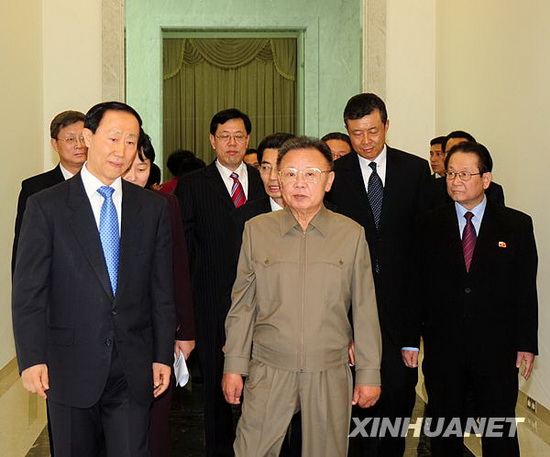 金正日强调,实现半岛无核化是朝方的一贯立场。有关各方为重启六方会谈倾注具有诚意的努力十分重要。为此,朝方愿同中方进一步加强沟通与协调。