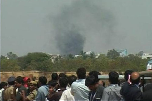 在印度海得拉巴3日开幕的航展上,这架海军飞机起飞不久就坠入航展现场旁边一个人口稠密的居民区。一栋3层高的楼房受损严重,周围其它建筑也遭到不同程度损伤。