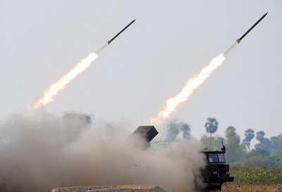 中新网3月4日电 据外电报道,柬埔寨军方4日在首都金边西北120公里的一个机场,公开测试了多管火箭发射器(BM21)。