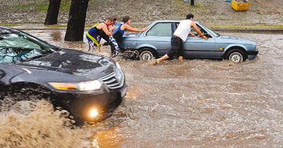 马场的一名目击者表示,天色瞬间昏暗,暴风骤然而来,接着下了10分钟冰雹,把赛道变成白色。市中心部分街道水深及膝,民众冒着暴雨涉水而行,情况狼狈。气象局在18分钟内录得19毫米雨量,不足1小时便达33毫米。当局表示,从未见过这样的风暴,预测将会持续。