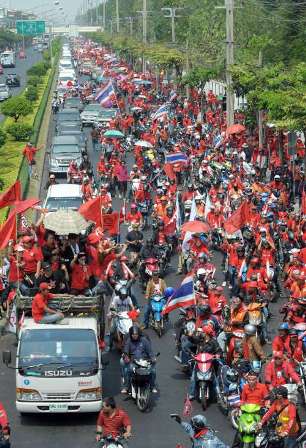 红衫军声称,届时将有多达100万支持者将汇聚到曼谷街头,要求阿披实解散国会,重新大选。而泰国政府预计,聚集的红衫军人数只有10万。