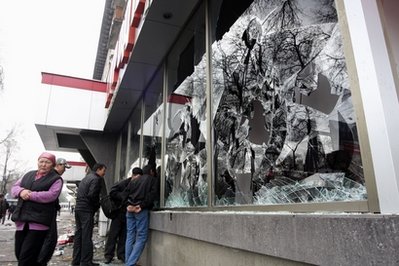 反对派示威者周三深夜攻进总统行政办公室,通过国营电台宣布,他们已经成功夺权,成立一个临时政府,由有“中亚铁娘子”之称的前任女外长奥通巴耶娃为首,管治国家。临时政府将运作半年,期间会草拟新宪法,为举行自由及公平的选举铺路。