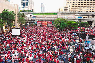 中新网4月9日电 据香港《文汇报》9日报道,泰国总理阿披实宣布对曼谷实施紧急状态法后,数千名反政府“红衫军”昨日继续留守曼谷市中心商业区,并计划主动出击,今天在10个地方发起大型示威集会,国内17个府亦会响应,逼阿披实政府下台。有分析指出,阿披实目前陷入两难,若妥协提早大选,很大机会失掉政权;若镇压示威者,势必造成重大流血,令局势更动荡。
