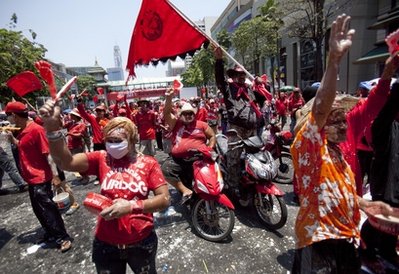 泰国政府表示正寻求与红衫军谈判,以结束政治危机。但红衫军坚持阿披实须立即解散国会,若他答应,示威者将实时回家。约500名亲政府黄衫军昨日聚集于胜利纪念碑,呼吁红衫军回家。