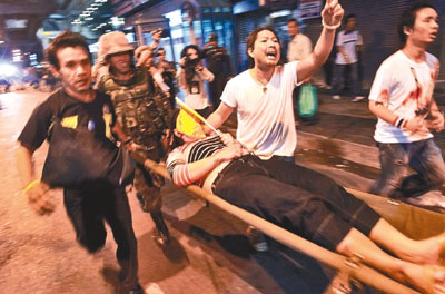 中新网4月23日电 据香港《文汇报》报道,泰国反政府红衫军聚集在首都曼谷市中心,用削尖的竹枝和车胎自制防卫栏,保护示威营地,成为了泰国军警的“禁区”,却出乎意料地成为了“旅游景点”,好奇的游客争相拍照留念。